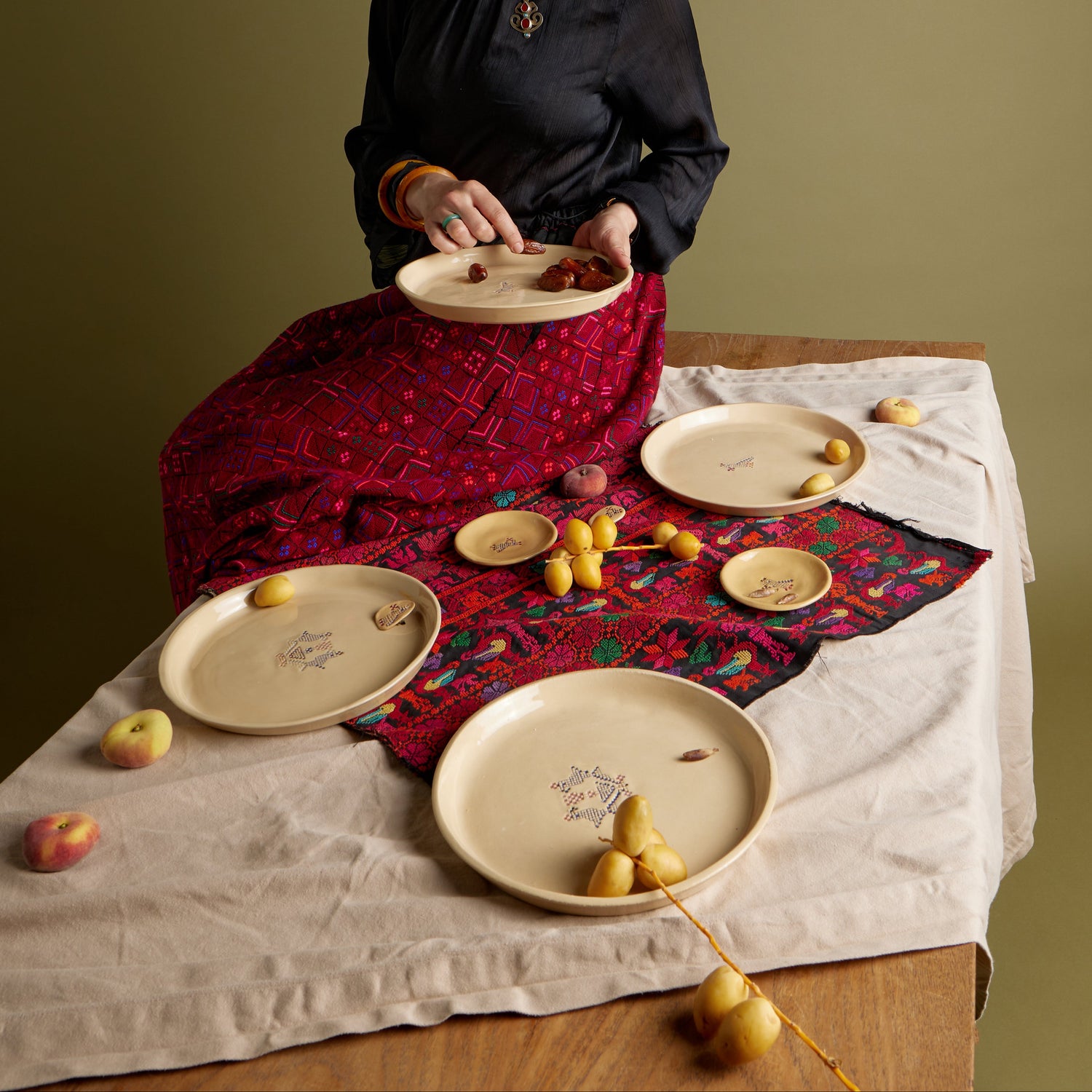 First traced in Jerusalem (القدس), the Shajaret Hob, or Love Tree, is a traditional Tatreez (تطريز) motif that grows from the hands of women who have stitched their longing, resistance, and dreams into thread. Jerusalem is not just a city,it is the beating heart of Palestine. It holds the sacred silence of stone steps, the fragrance of thyme in old courtyards, and the layered voices of call, chant, and song.